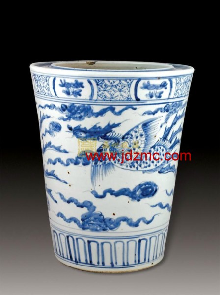 從目前博物館收藏,各種書籍圖冊和筆者收集的資料看來,明代初期到中期,景德鎮鳳紋裝飾的瓷器官窑產品居多。特別宣德一朝,鳳紋裝飾,出現在各類器形之上。而初期到中期,景德鎮民窑瓷器上裝飾鳳紋的可謂寥若晨星。萬歷四十七年,神宗皇帝駕崩了,第二年,撤除了礦稅和所有的燒造任務,并且撤回了管理的官吏,就此明朝兩百余年的禦窑廠就此終結。明末的景德鎮窑,從官密的桎中解脫,此時的鳳紋不多,但用筆大多如疾風迅雷,意趣灑脫,繪畫蒼老潑辣,點染隨意。