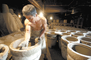 和顺瓷号老板曹和炎采用.土金.镶碗边,为他人生赚了第一桶金,也为他的起家迈出了第一步。随着.洋金.被引进市场,并广泛用到瓷器上,这.土金.的身价大跌,实事求是的说.洋金.的亮度及色泽尤其是经久性比起.土金.那是有过之而无不及。但是曹和炎土法上马,用自己制作的.土金.大胆用到瓷器上,从一个时代而言这不能不说是他的一个首创。在销售中,有生意人或顾客问及这金边是否真金,曹和炎摇头否定,这说明他的坦荡和直率。