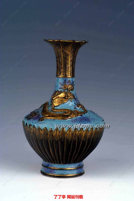 颜色釉陶瓷知识品种拾遗补缺之清乾隆,古铜彩龙纹花口瓶 高15.6cm 宽9.1cm