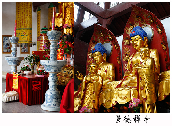 据清道光十二年《浮梁县志》记载,工农街原来还有过一所寺庙,名叫景德禅寺。它始建于宋真宗景德年间,原寺位于景德镇市小港嘴工农街(今陶销仓库),距今约1000 多年历史,由当时的僧人秀松禅师开创,规模宏大,兴盛一时。后元代时毁于大火,明朝洪武二年(1369 年)复建。清雍正十三年(1735 年),由本镇刘希圣善信得以鼎立护持。时至新中国成立时仅存一座天王殿,其余殿堂只存遗迹。后来在政府的重视下,决定修复千年古寺,为景德镇寻回一所历史古迹,成为江南旅游重镇的一处重要景观。但原景德禅寺早已改作陶瓷销售公司仓库,同时有大量居民居住,为保护和延续历史文化遗迹,经市宗教管理部门同意将原寺迁移至河西凤凰山三路19 号景山寺。不过现在居住在此的大多数人,对这座寺庙的历史却不太清楚。