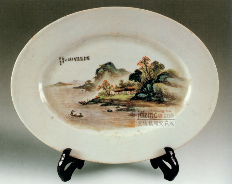 粉彩山水鱼盘 长29厘米 宽21厘米 1950年