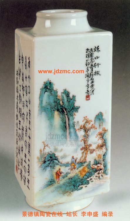 | 汪野亭 1936年粉彩山水四方瓶(正反两面) 鉴定图录 | |||||