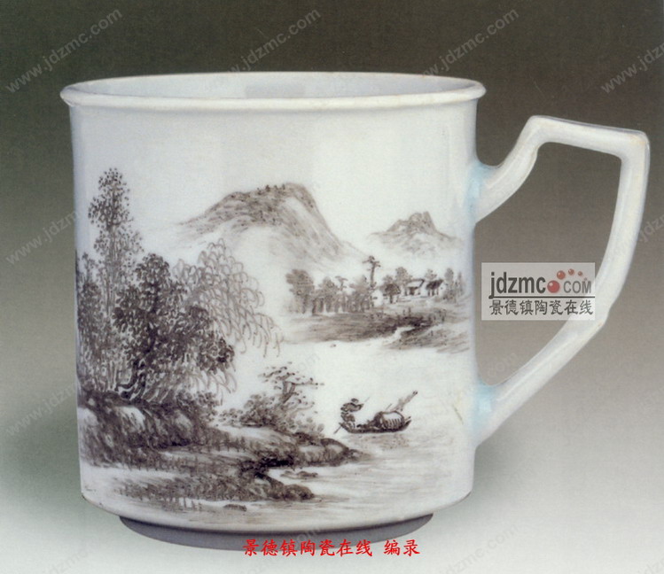 墨彩山水茶缸高11厘米 直径10厘米 1949年一1952年 提示:本图录为学习研究使用,其具体的真伪请读者自己谨慎详查。