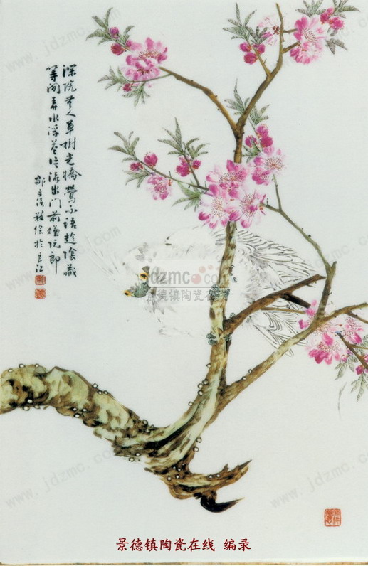 | 邹文侯粉彩桃花鹦鹉图瓷板鉴定图录 | |||||