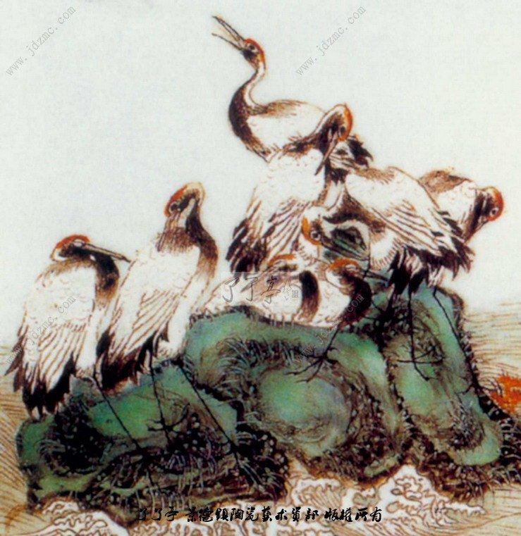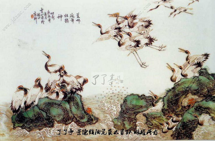 | 景德镇丰城籍艺术家 釉上彩《 松鹤图·粉彩·陆云山 玉兰花鸟·新彩·陆云山-鉴 |