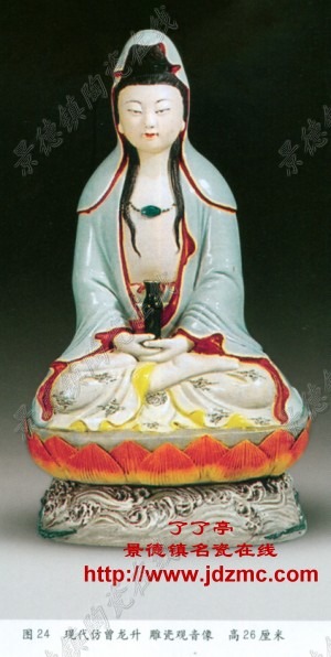曾龙升为景德镇瓷塑名家,其作品形神兼备,衣纹流畅自然。传世作品较多,现代人仿品亦多,但较少能达到形神兼备的地步。