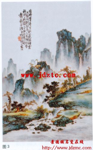 就在晚清景德镇瓷业不景气之时,安徽几位文人画家介入景德镇瓷艺界,给景德镇瓷坛带来了一股清新之风。咸丰、同治、光绪三代(1851—1908),以程门、金品卿王少维为代表的皖南新安派画家,把文人画的艺术特色、表现技法及其审美旨趣,带进瓷上彩绘。这种文人画家自觉地参与陶瓷艺术的创作行为,在中国陶瓷史上是首开先河之举。它不但有助于提高陶瓷艺术的文化品位,也对其时景德镇的瓷艺界,产生了巨大的震撼和冲击。因为文入画家的身份及社会地位,与传统的陶瓷艺人是不可同日而语的。文人画家为了使自己适合在瓷上进行绘画,简化了粉彩的工艺技法,创造了类似于浅绛山水画的瓷上浅绛彩。由于浅绛彩彩绘工艺的简便性,也使得一些海派名画家,如张熊、吴待秋、王震等,参与瓷上彩绘(注1)(图1)。值得一捉的是,上海作为晚清崛起的一个新兴商业城市,形成了新的陶瓷市场,产生了新的陶瓷需求对象和阶层,这就使经常活动于上海的瓷上文人画家,在商业上也获得了相应的成功(注2)。正是因为文人瓷艺家所具有的社会地位,以及他们在商业上的成功,使得这一新的瓷艺流派,对日后景德镇的瓷艺界,产生了极为深远的影响。然而瓷上浅绛彩,毕竟是文入画家们为求便就简,对粉彩工艺的一种浅尝辄止的尝试,自然不可能在工艺上取得实质性的突破(注3)。因而浅绛彩瓷在年深月久之后,颜色便易于剥落,画面也渐渐破损,色料也渐渐失去光泽(图2),故至清末民初时,已日渐衰微。这种现象,使得进入瓷坛曾名噪一时的文人瓷艺家和他们的浅绛彩瓷一样,在瓷坛上渐渐地消失了,乃至于被人们淡忘。