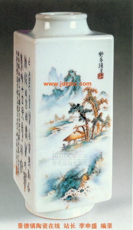 粉彩山水四方瓶(正反两面) 高30厘米 宽12.5厘米 1936年