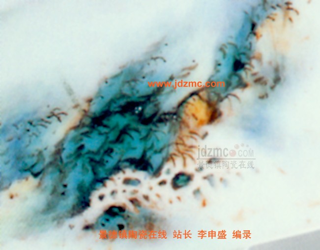 右图描绘一山溪边之茅亨左侧隐上垂竿钓鱼情景。亦见烟云满幅,其境凄清,于是钓鱼隐者便有了姜太公之风。
