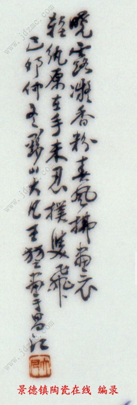 粉彩仕女双蝶图瓷板王大凡长20厘米。宽12.5厘米题款:“晓露凝香粉,春风拂画衣。轻纨原在于,未忍扑双飞。己卯(1939)仲冬,黟山大凡王堃画于昌江。”印章:“大凡”。本资料图录来源景德镇陶瓷馆,资料真实可信。