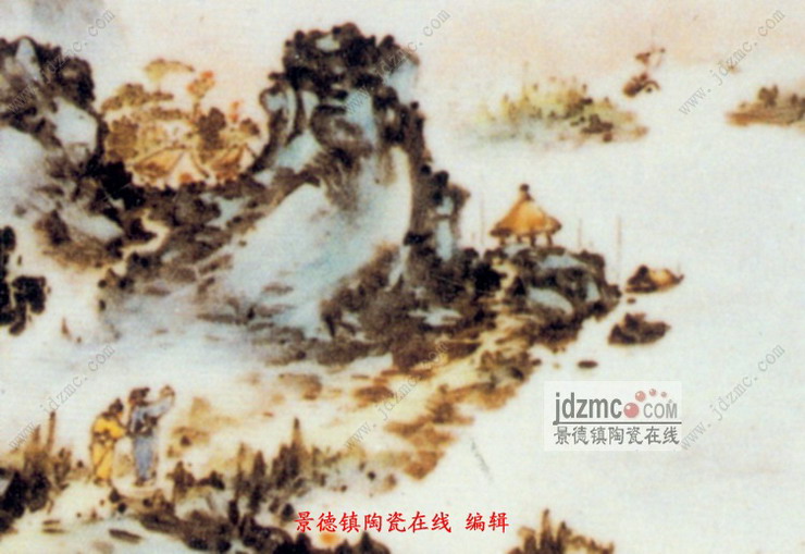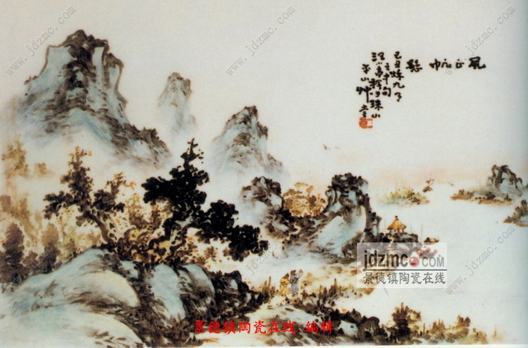 粉彩山水瓷板 25厘米X 38厘米 1949年