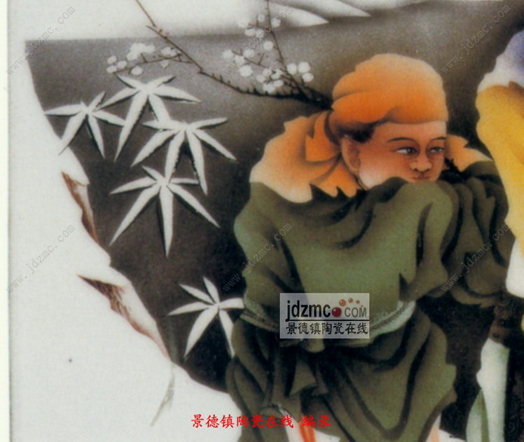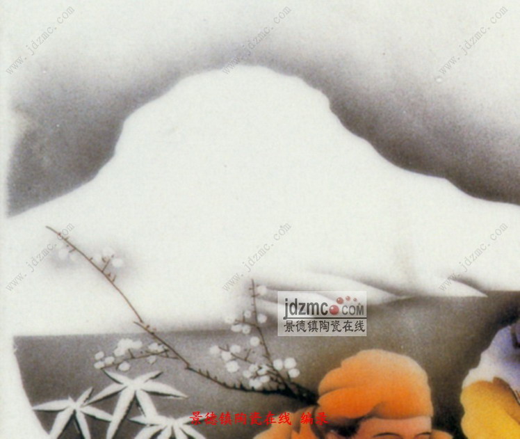 新彩刷花和靖爱梅图瓷板 程大有高38.8厘米,宽25厘米题款:“新平野叟子辉程鹏绘于江西景镇,程大有图画馆出品。”印章:“程、大有”。景德镇陶瓷馆 馆藏资料 真实可信