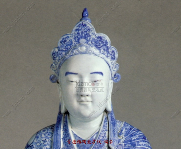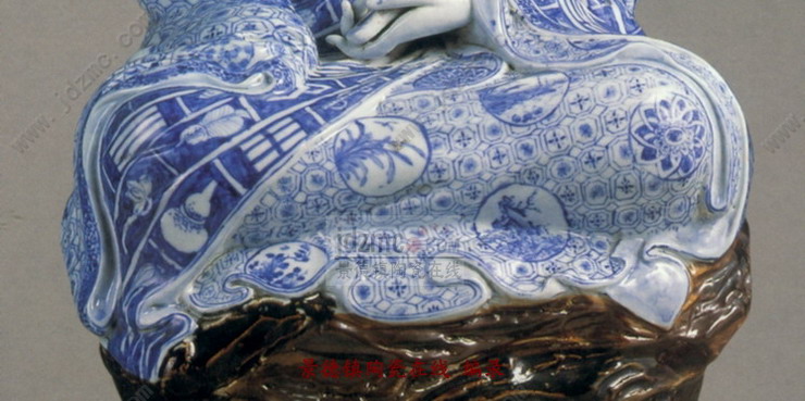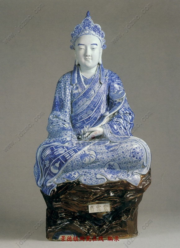 青花罗汉瓷雕 高54厘米器座:阳文楷书印“紫云岩”、“魏洪泰造”。景德镇陶瓷馆 馆藏作品资料 真实可信