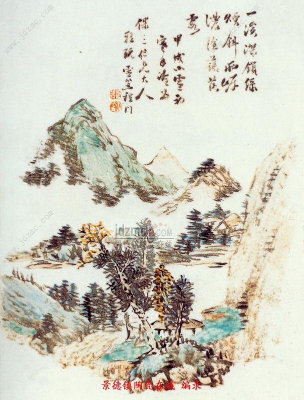 画上题诗:“一溪深锁绿烟斜,两岸浓荫获落霞。”另行落款:“甲戌小雪初寒手冷为保三仁兄大人雅玩,雪笠程门。”甲戌年乃同治十三年(1874年),款后钤“臣门”、“雪笠”两印。