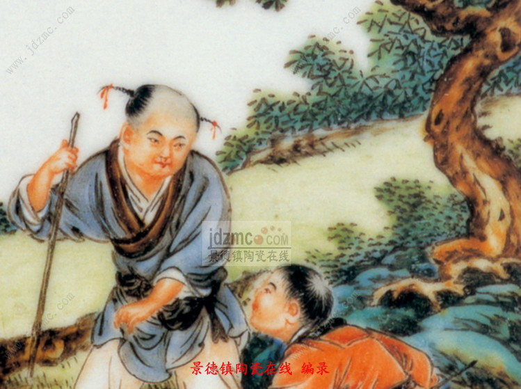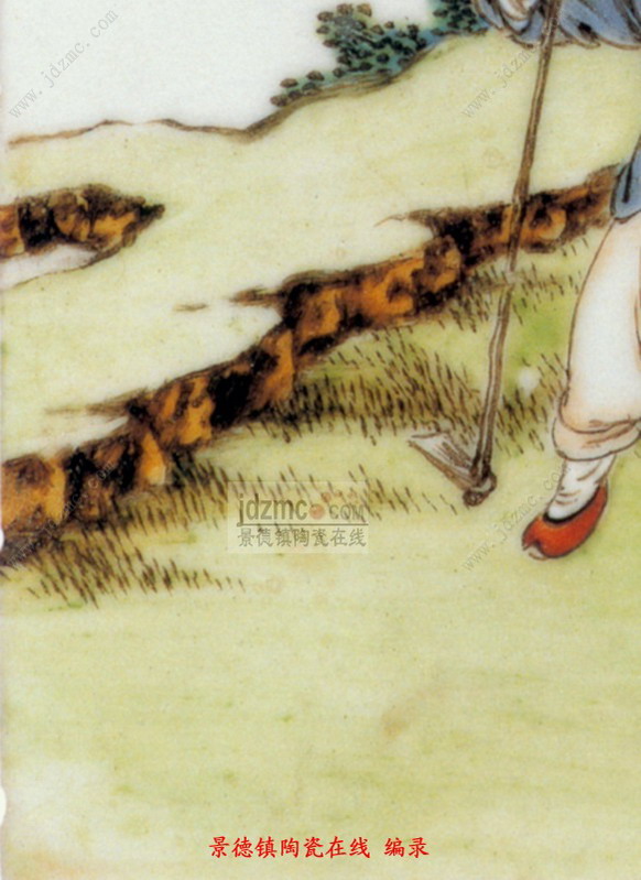 粉彩学耕图瓷板王大凡长20厘米、宽12.5厘水题款:“儿童不识耕耘苦,也把锄头学种田。子湘院长雅玩,魏清泉敬赠。辛巳(1941)冬月,黟山大几王堃画。”印章:“大凡”。景德镇陶瓷馆 馆藏资料 真实可信
