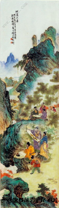 熊晓峰 竹溪六逸·粉彩瓷板画