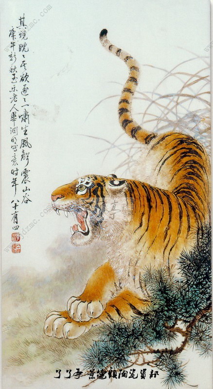 毕氏几十年致力于画虎,集名家张善子、高奇峰诸家之长,师其父毕伯涛的衣钵,仔细体察各类虎姿雄威。在他的笔下,卧虎如磐,巍然雄赈立虎如松,气宇轩昂;游虎如龙,悠悠成趣奔虎如风,势不可挡。真可谓:“虎神生灵气,百态动千姿。”令人赞叹不已。 (刘杨)
