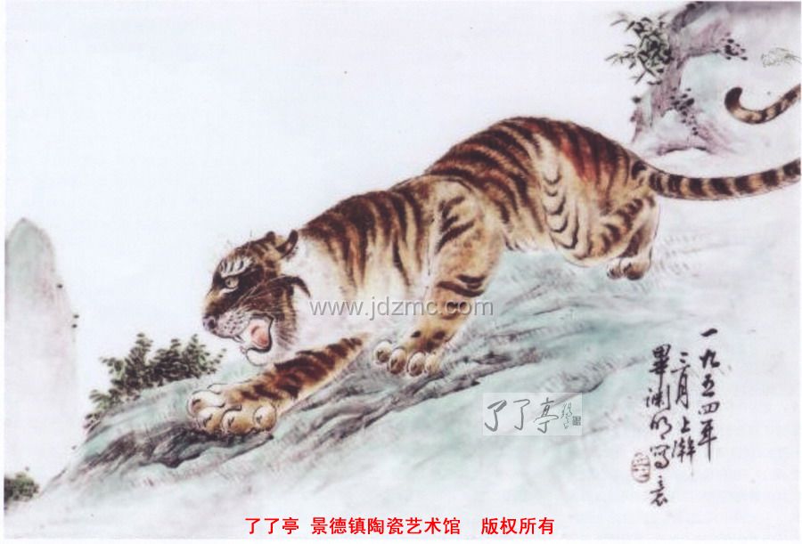最开始他师法古人,临摹包贵父子、刘奎龄、朱文候、张善子、高奇峰等人的画作,吸收各家画法之长。后来发现这样无法达到形神皆似,最好的办法还是去看真老虎。看老虎最好的去处当然是动物园,可是景德镇当时没有动物园,他只好省吃俭用,数次专程到南昌的动物园看真老虎。听说著名的法国海琼旧马戏团在上海演出,他几乎把家中所有的积蓄都用作旅费,赶到上海观看虎豹的表演。1 957年到北京参加全国艺人代表会,为了观虎,他甚至错失观赏京剧大师梅兰芳演出的机会。