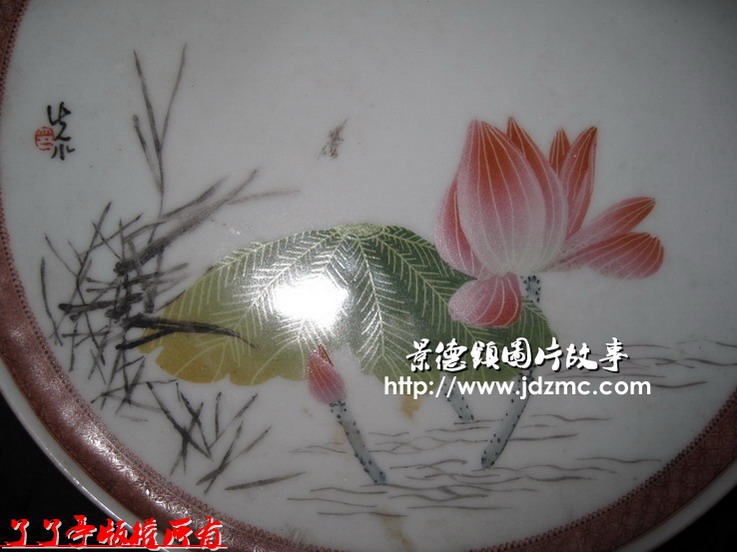 的各种新彩颜料,隔着铜丝网筛涂刷,使色料通过铜丝网以雾状透过呈现出的空白花纹而附着在瓷面上,直至刷完整个画面。这种工艺的基本功,是对花纹图样的描绘和刷花技能的掌握,需要不断练习。练习当然不能用真颜料,他都是用红泥巴、黄泥巴代替颜料,来练习手法的轻重,以便控制画面的明暗和均匀度。