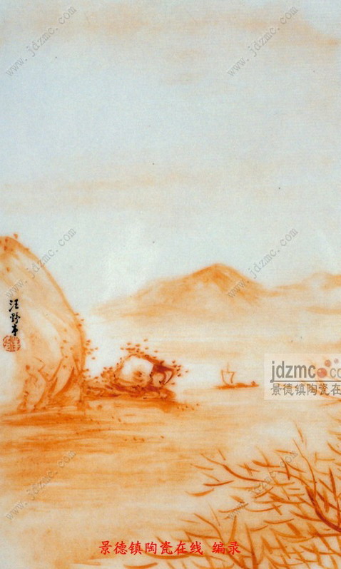 了了亭 景德镇陶瓷艺术馆 资讯 本文刊发于《景德镇日报》瓷苑版:汪野亭的粉彩山水别开生面,得益于工艺的创新,更得益于艺术的创新。他率先运用.通景山水.章法装饰瓶类制品,开20 世纪初景德镇粉彩山水装饰章法的新风。所谓通景,就是将一个画面以一个完整的构图,在圆柱式的器皿上展开,让人从任何角度都可以看到完美的画面。即将山水相连、境气贯通的一个整体画面,布局在各种造型的器皿上,一改以往仅一面饰画,另一面题款,或在锦地开光的斗方中作画的山水装饰故习。自然界山外有山,流水不息,意境万千,乃天设地造的四时景观。.通景.法在表现自然景观时,使观画者冥想.山水源头无觅处,游子信步山水中.的意境。在陶瓷绘画史上,花鸟、图案采用通景法较多,而山水画大多都是在图案开光的小面积上作画。汪野亭的山水画采取山水相连、云雾飘逸等巧妙的连接处理,形成360 度的完整构图,没有勉强的连接痕迹。.通景山水.自问世至今,已跨越近一个世纪,在景德镇一直为同仁们所沿用。汪野亭粉彩工艺的成就,还表现于他致力于墨彩山水的工艺变革。传统的墨彩山水,一般用.艳墨.作画,汪野亭另辟蹊径,选用珠明料作画,再加盖雪白。可工细、可奔放、可纯以线描、可多种皴法并用、可染擦浓淡,随心所欲。烧成后,乃见一层淡雅的紫色保护着画面,使画面特别柔和清雅,层次丰富,韵味盎然。他用此新法绘制的墨彩瓷板画《江山胜景图》,在1915 年巴拿马博览会上,以独树一帜的新技法获奖。获奖后,美、日友人慕名来景德镇,盛情邀请他出洋发展,为了景德镇陶瓷艺术的发扬光大,他毅然婉辞。汪野亭的粉彩工艺变革,丰富了景德镇粉彩山水的时代风格。