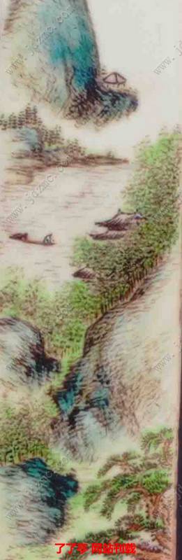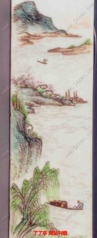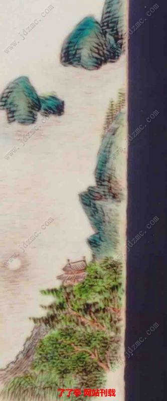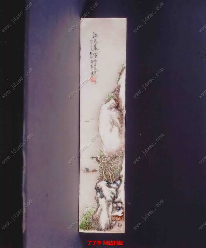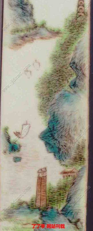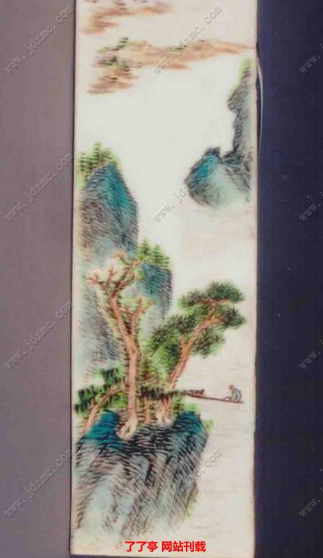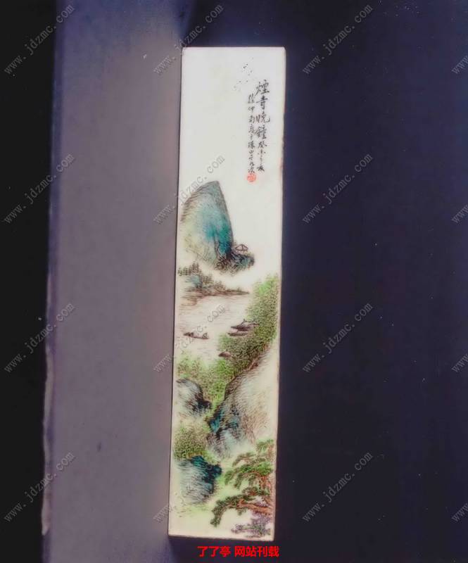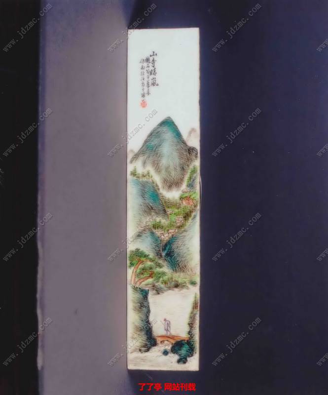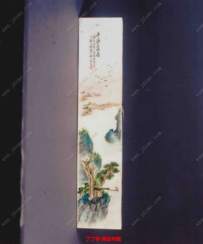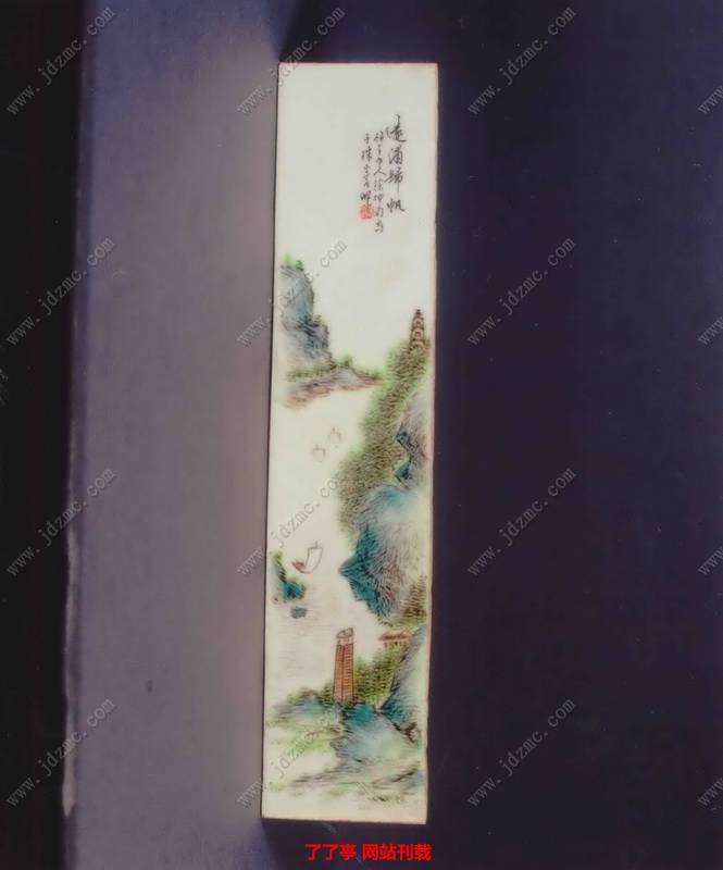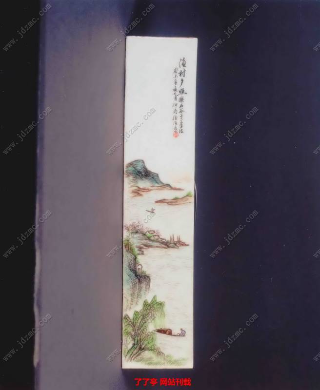 徐仲南-真品粉彩潇湘八景瓷板(洞庭秋月)39.9×8.2cm鉴别图例