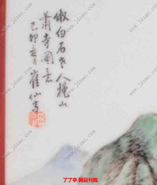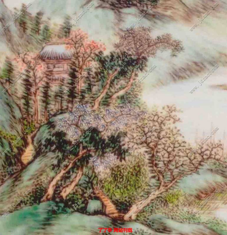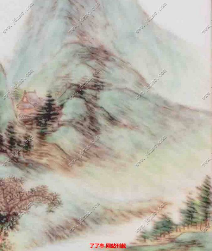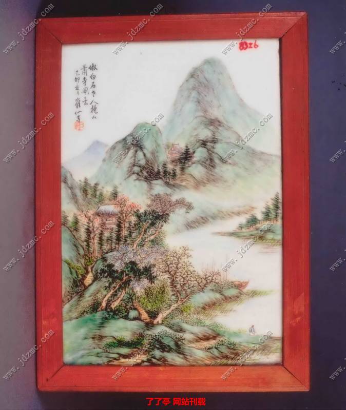 田鹤仙-粉彩山水图瓷板 39×26cm真品鉴定图集