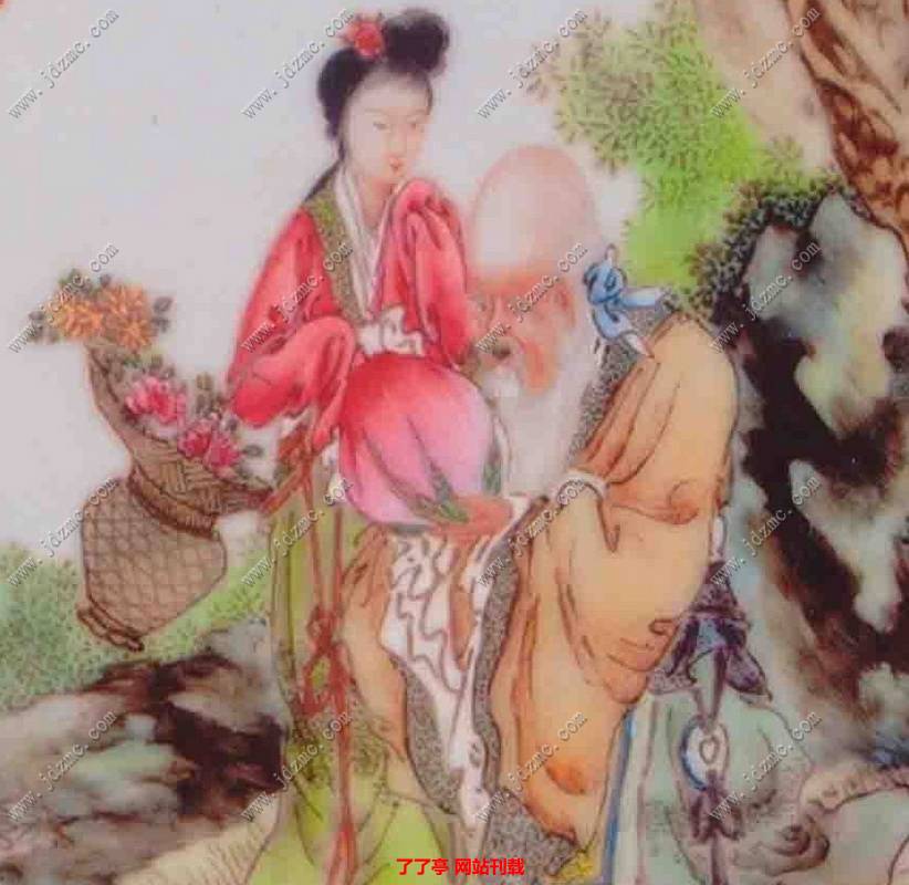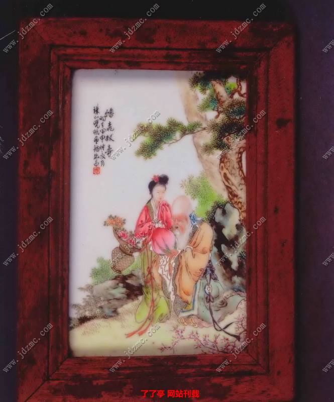 刘希仁-粉彩漂母施饭图瓷板 20×13cm真品…