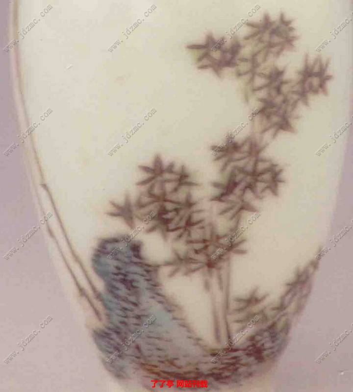 近代景德镇艺术陶瓷拾遗补缺(粉彩竹图莲子瓶 高14.3cm 口径3cm)