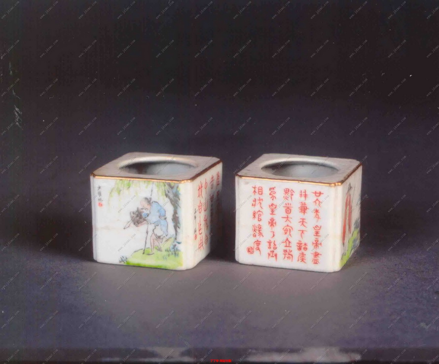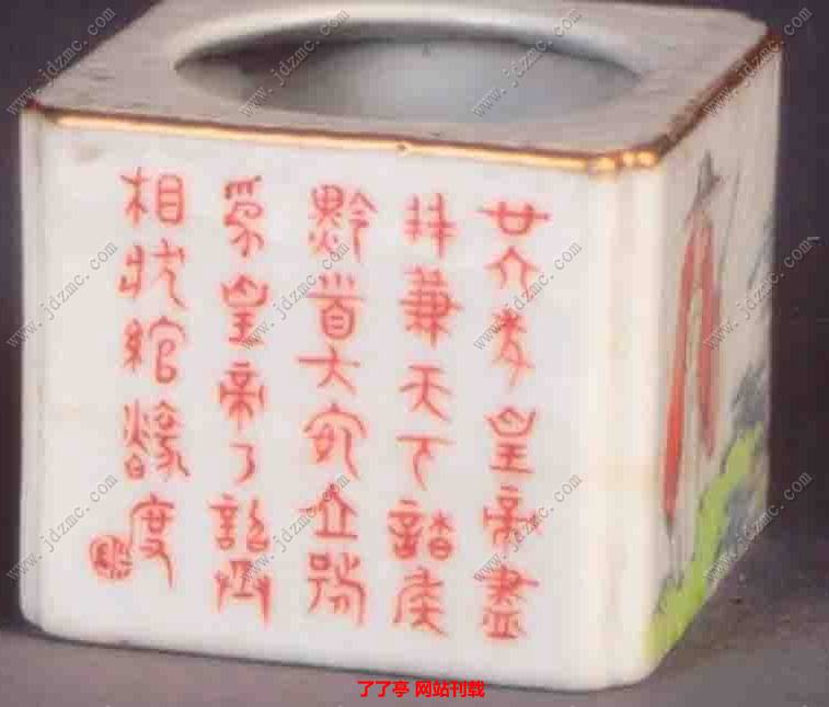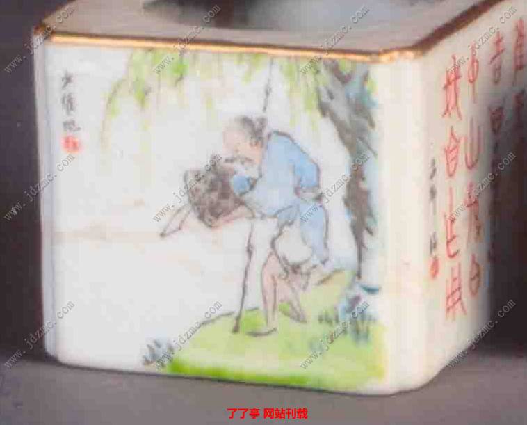 近代景德镇艺术陶瓷拾遗补缺(王少维 浅绛彩人物书法温酒具 高5.9cm口径5cm)