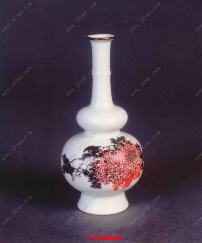 近代景德镇艺术陶瓷拾遗补缺(粉彩菊花葫芦瓶 高20.5cm 口径2.2cm )
