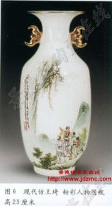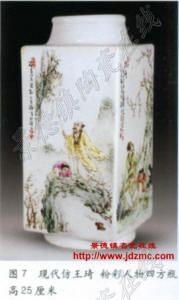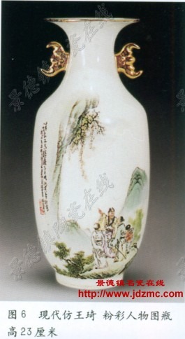 �ִ���¡�������֮�࣬�����������ҷ�������ѧ��������Ƭ���зŴ�Ȼ���ñ�ֽ����������ͼ֮����������֮�ϣ����ûõƴ�����֮�ϣ�ǰ����һ�θ����������ӡ����ʮ��Σ������ߵ������ö�֪�ˡ�ͬʱ��Ҫ����ע����ǣ���¡֮���乹ͼ��ɫ�ʡ���ʶ�����澧һ�������ڳߴ���ȴ���ǿ�¡������СһЩ������ijЩ�ط����Ա䶯����������Ͼ�������ͼ�ɰ��е��������˴����ǿ�¡֮�˵����۷����в�����ߴ粻ͬ��ijЩ���֮�еIJ�ͬ�������������ֵܡ� ��ֲ ��ν����ֲ���ǽ�ijһ���ҵ���Ʒ�ɴ�����֮����ֲ��������֮�ϣ���ԭ���Ĺ�ͼ��ɫ�ʡ���ʶ�Ⱦ��ޱ仯������α�����ַ��Ͽ�¡֮���Ը�һ�ƭ�˵Ŀ�����Ҳ�Դ�һЩ�����������ͬ�ڿ�¡֮����һ����������ֲ֮�����ǽ��ɰ廭�Ƶ�����֮�ϣ����ټ�����������ֲ���ɰ��ϣ������֮��ͼչ��֮���ʺ�ƽ����ʽ�� ͼ5Ϊ����1931��۲���ɽ����ͼ�ɰ壬ͼ6Ϊ�ִ��������۲�����ͼƿ�����ߵ����ﲻͬ��ǰ��Ϊ�ɰ壬����Ϊ˫��ƿ��������һ�������һ�������־�Ϊ���뿴ʯ�������£���ӳ��ǰ«ݶ����������δ������������ɢ������д����ɽ�ʹΡ����������������������ԡ�ӡ�¶���������������Ϊ�ӡ������ķ�����ñ��������ٴ����������������ˣ��������ᣬ�������ҡ�������й���ͳ��������ݲ���֮�䣬�òԹ��۾�֮�⣬������沿���ֿ̻�ϸ�£���������滭����Ⱦ�����������ǿ��ǰ�������������ַ�������������Σ��������ǴӰ��ϡ��ᡱ��ƿ�ϣ������˱��жٴ�̬֮�����������ң�������̬���㣬�沿���Լ���Ⱦ����û�в�Ρ�Ω�����ɽ�º��´������ܻ��м������⡣ ����һ�ֿ�¡����ֲ���õķ������ǽ����Ҷ����Ʒ��¡֮����ֲ��ͬһ����֮�ϣ���ν�ۺ�ƭ�ˣ���ͼ7�۲������ķ�ƿ������ֱ���ɽ��ñͼ�������仨ͼ����ɽ����ͼ����ʿ��÷ͼ������������ʶ��ӡ�¡�����1932����������ɽ��ñͼ�ɰ壬ɽʯ֮��һ�������ȹ��ɣ�����Ʈ��������������һͯ�ӷ���ɽʯ֮�ϣ�˫��ǰ�죬����ץ���紵�µ�ñ�ӡ������ķ�ƿ�ϵĻ������������£�����������Ʒ�ϵIJ��ɣ����Ǹ�Ϊͼ5��ɽ����ͼ�е�ɽ�����ܣ������е�ԶɽҲһ��ͼ5��1929����������о����仨ͼ�ɰ壬һ��һͯ����÷�����£����߾��������·�����֦ͷ÷����ͯ��֧ϥ����һ�ߣ��̻�����Ω��ΩФ����������ͼ���澧��ͬ��Ω������Ϊ��̽÷������������鷨����ʧˮ��������һ������Ϊͼ5��ɽ����ͼ������һ��ͼ6��Ʒ�����һ����ʿ��÷ͼ����ͼҲ��ԭ����Ϊ��������ĸ�ʿ��÷ͼ��ƿ���棬ԭ��һ��һͯ������˫�ֲ��������÷��˼��ͯ�ӳ�����ǰ��÷֦��÷����㣬������ζ���������乹ͼ���������ɲ��㣬���֮�����ͣ�١�����֪���������ҿ�����ͬһ��ĵ���Ʒ�������������¡�Լ�����Ʒ��Ҳ������ֲ���Լ�����Ʒ������������ָ��Ҫij�ֻ��棬��Ҳ����һ�ɲ���ؼ��Ի滭�������Ļ���ˢ����ӡ�������Dzʻ档�ر��������������IJʴ����ң���ȫû�б�Ҫ�ظ��Լ��ľ����������ϳ���һ�������ϡ����ԣ���ƿΪ�ִ��˷��죬�ӱʷ���ɫ���Ͽ�����ͼ6������֮���������dz���ͬһ���ֱ�Ҳδ��֪��������֮�ն��˲�dz�� ������ֲ֮����ʹ��һЩ���������С�������Ͽ�¡֮������ƭ�ˣ�����ʹ��֮�߲��������Ҳ��Ĵ������Ϊ���dz���ͬһ����ġ�ͬ���ֵܡ��������������Ϊ���������!�����һ�����ڴ�����������ӡˢ�����Բ����ܽ���ͬ��ͼ��������ͬ������֮�ϡ�������������Ϊ�