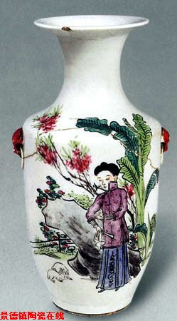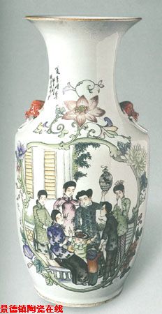晴日观鸟图长颈瓶 所署堂名款有松林阁、桐华居、西轩等等,粉彩民国时装人物画瓷器主要作为婚礼嫁妆和喜迁新居的陈设品,这类瓷器的使用者大多是青年人,他们最易接受新事物,也崇尚新事物,成了购买时装人物画瓷器的主要顾客群,在瓷器上绘制了形形色色的时尚人物的生活和活动场景,迎合了民国早期城市青年的审美意趣。 民国早期瓷器上的时装人物画,吸收了西洋水彩工艺画法,画面色彩艳丽而透明,人物与布景巧妙精到地配置在一起,十分鲜艳夺目,民国时装人物画瓷器产生于1915年,衰退于1928年。在悠悠的中国陶瓷史上,它虽然只是昙花一现,但却标志着中国现代瓷器艺术的诞生。 |