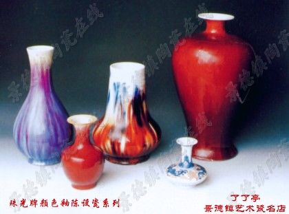 首先,传统品种恢复了。集中了一批老艺人试验颜色釉,恢复了多年停产均红、草绿、玫瑰紫、鳝鱼黄、茶叶末、美人醉、孩儿面、天青、影青、豆青、鱼子黄,翡翠等数十种颜色釉,同时创新了鱼子绿、咖啡釉、电光釉、宝石釉等高温,低温釉,并相继运用于陈设瓷、日用瓷、工业瓷、卫生瓷上。1954年北京有关部门曾选择3500件颜色釉产品作国庆用瓷。