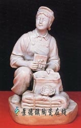 名称:豆青釉女“知青”瓷雕像 规格:H31.5cm Yellowish Pea Green Glazed Sculpture Porcelain of Female School Graduate |