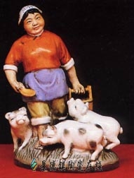 名称:养猪女社员彩瓷雕像 规格:H25.5cm Decorative Sculpture Porcelain of Girl Raising Pigs |