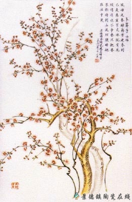 名称:毛主席诗词《卜算子·咏梅》瓷板 规格:43cm X 73.5cm 款识:景德镇艺术瓷厂美研室 Porcelain Plaque with Decoration of Chairman Mao's Poem "Pusuanzi·Ode to Plum" |