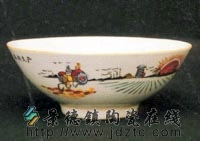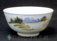 名称:白釉彩绘建设山区瓷碗 规格:D12.5cm White Glazed Porcelain Bowl with Decoration of Constructing Mountainous Areas |