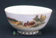 名称:白釉彩绘把粮食卖给国家瓷碗 规格: D11.7cm 款识:中国景德镇 |