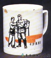 名称:白釉彩绘《沙家浜》瓷杯