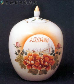 名称:白釉彩绘送《红旗》杂志下乡瓷罐 |