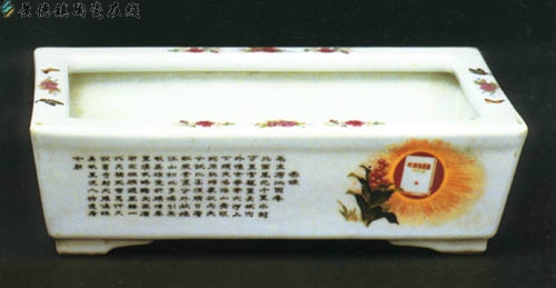 名称:白釉彩绘毛泽东语录水仙花盆 |