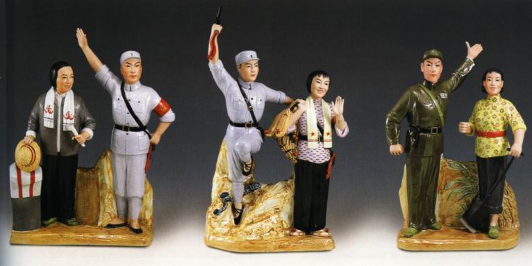 样板戏主人公彩瓷塑像2 高42厘米(左)、37厘米(右) 样板戏主人公彩瓷塑像1 高42厘米~46厘米