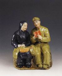 战士与老大娘彩瓷塑像