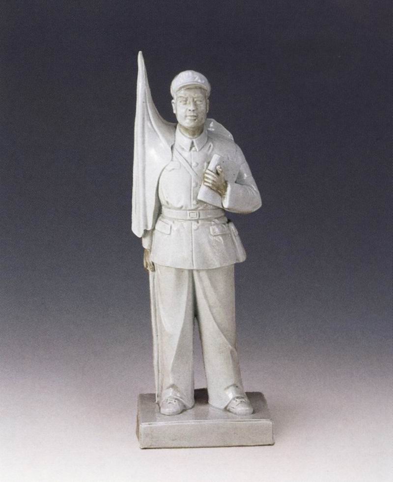 革命战士白釉瓷塑像