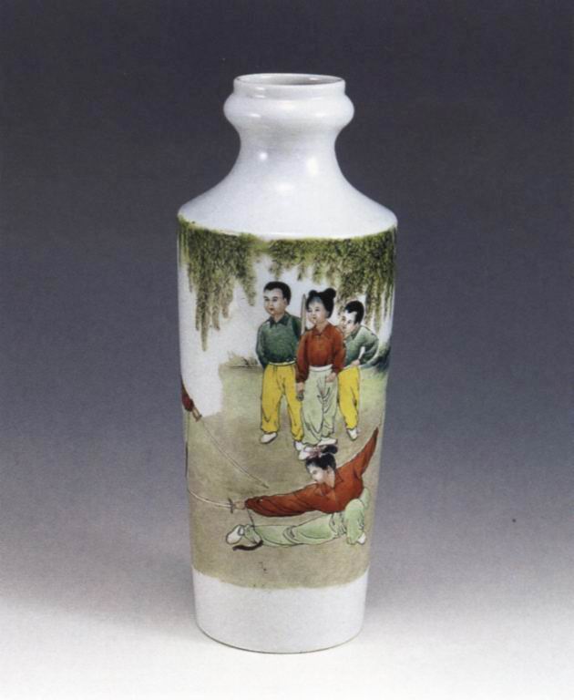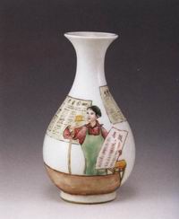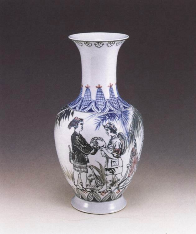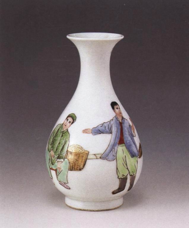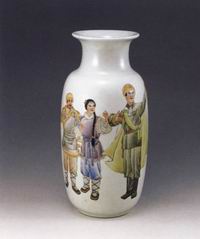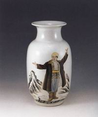 《智取威虎山》主人公扬子荣彩绘瓷瓶