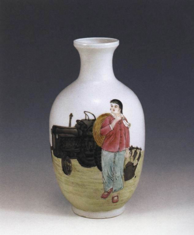 女拖拉机手彩绘瓷瓶