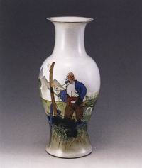 牧羊老汉彩绘瓷瓶