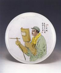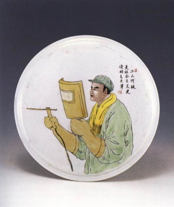 工人主力军彩绘瓷挂盘