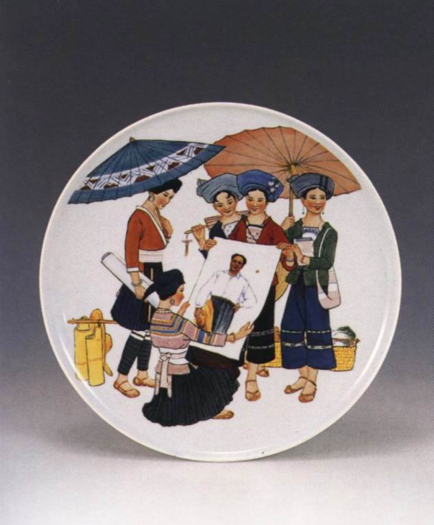 少数民族敬仰毛主席彩绘瓷挂盘