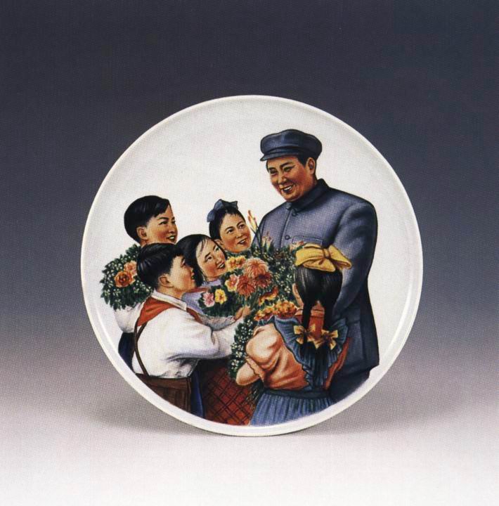 毛泽东与少先队员彩绘瓷挂盘